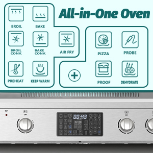 | Oven Cooking Modes | Bake, Bake Convection, Broil, Broil Convection, Air Fry, Pizza, Proof, Dehydrate, Keep Warm,Preheat, Meat Probe, Rotisserie |
